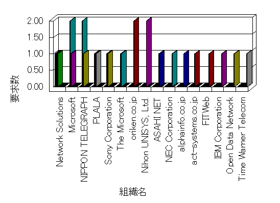 組織ユーザーにインターネット接続を提供する、商用または非営利団体、学術・行政機関などの、インターネット ドメイン で識別される団体や組織です。Microsoft Site Server Analysis は同じ組織に登録されたすべてのドメインを 1 つの組織としてグループ化します。ドメインがデータベースで使用できない場合は、1 つのインターネット ドメインが 1 つの組織を識別するのに使用されます。